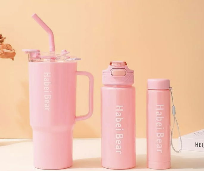 O kit reúne três garrafas com propósitos complementares para cobrir o dia inteiro de hidratação: